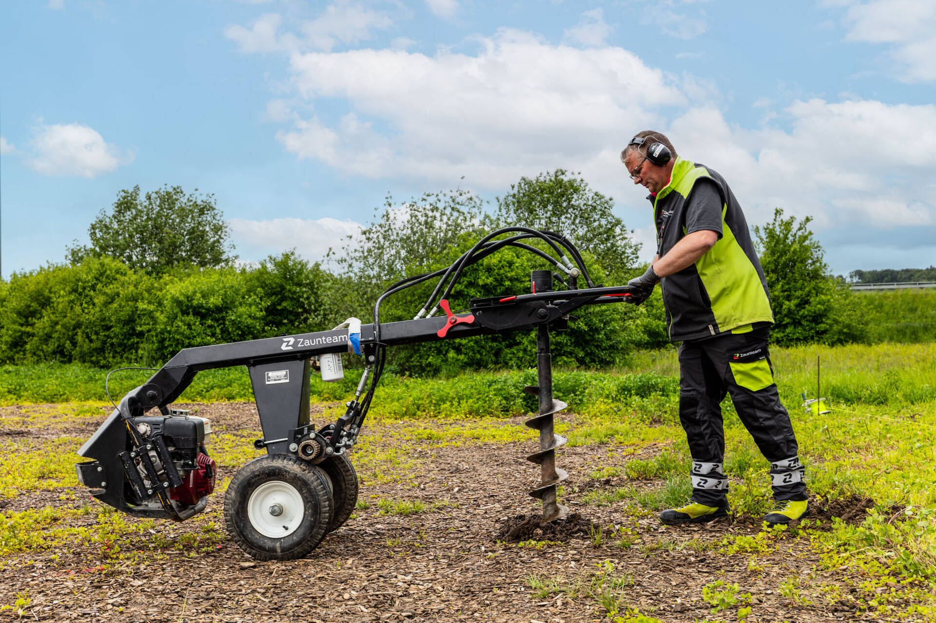 Unsere Ramm-Maschinen schlagen Zaunpfosten in minimaler Zeit ein, auch harte oder steinige Böden sind dabei kein Hindernis. Das spart Zeit und damit Kosten. Das Resultat: Budgettreue und langfristige Stabilität.