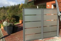 Der Glaszaun setzt eine klare Grenze, wirkt aber edel und freundlich. In der Gestaltung haben Sie freie Wahl. Von Standardglas über sandgestrahlte Flächen bis zum individuellen Siebdruck – es gibt zahlreiche Möglichkeiten.