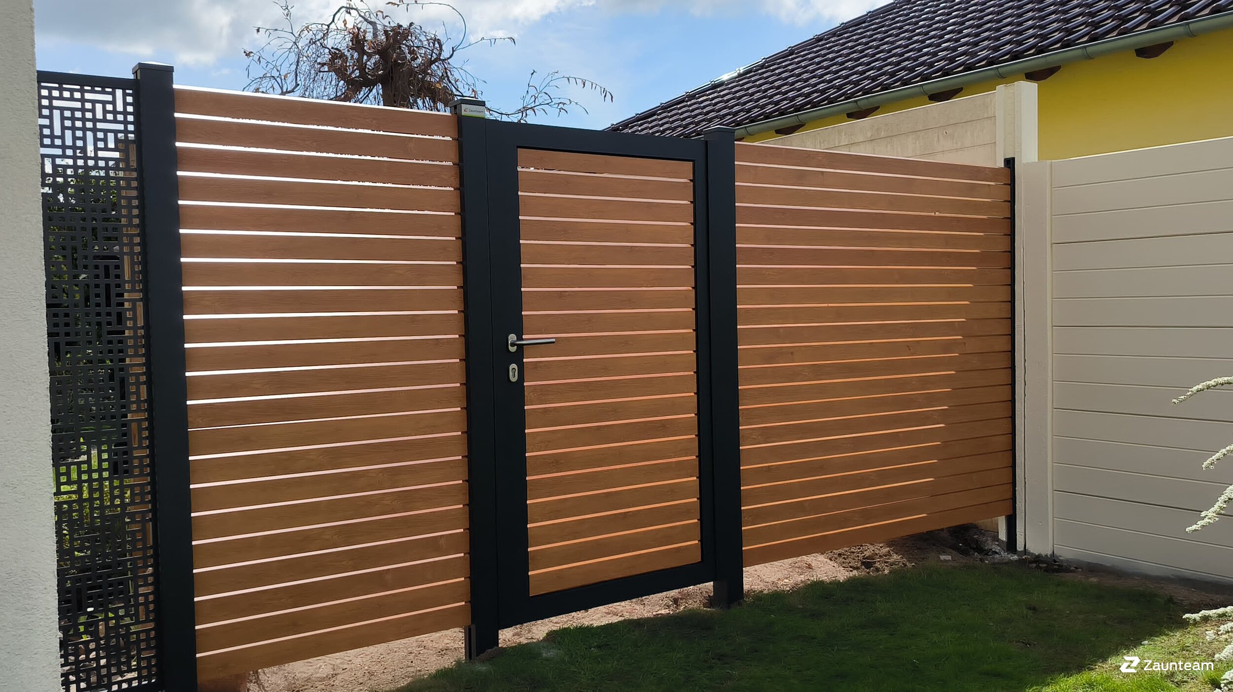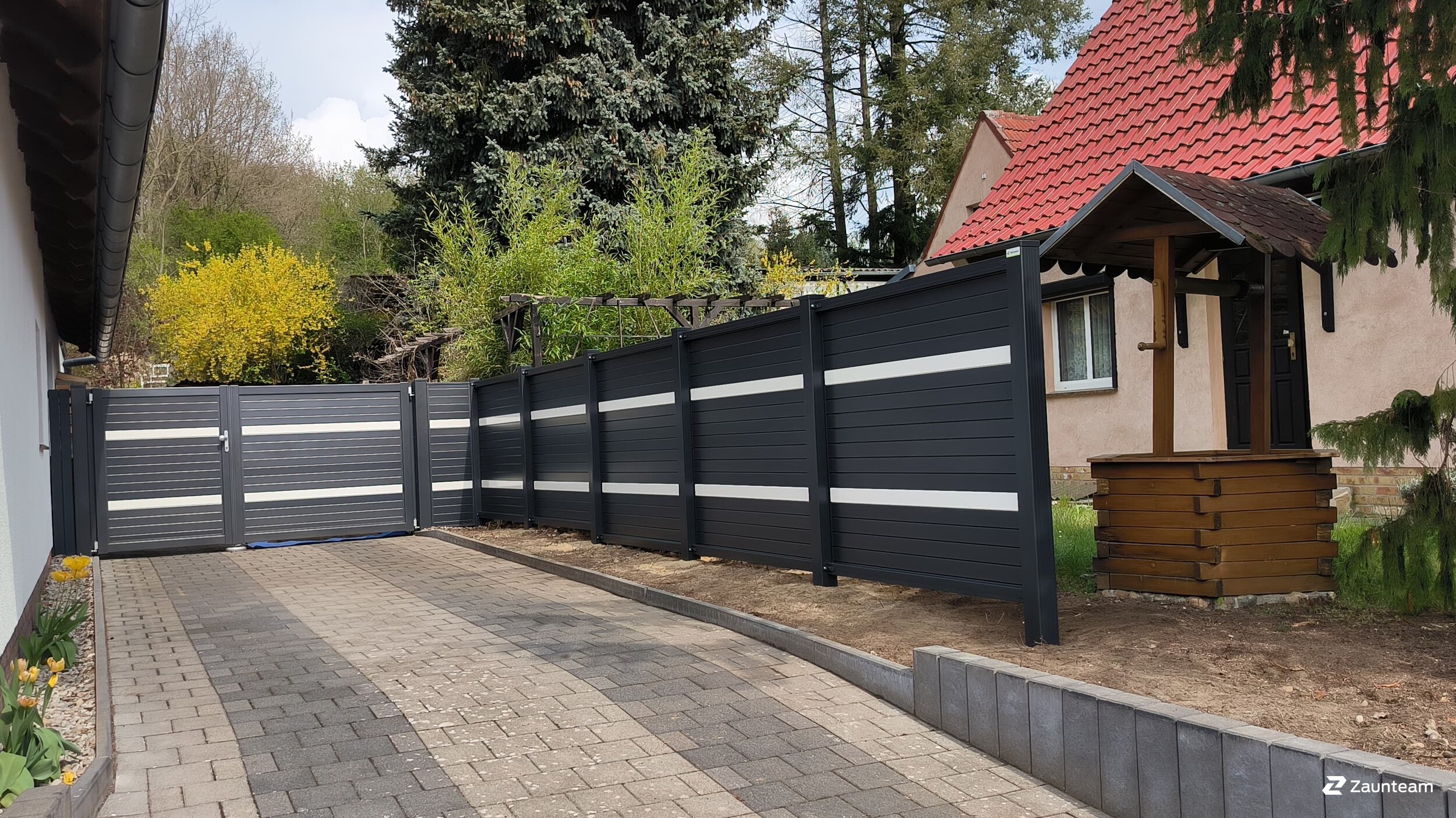 Ein Sichtschutzzaun aus Aluminium bietet die perfekte Lösung für Gartenliebhaber, die Wert auf Privatsphäre und Langlebigkeit legen. Dieser Gartenzaun überzeugt durch seine Korrosionsbeständigkeit und hochwertige Verarbeitung, ideal für jeden Außenbereich. Die Aluminiumsichtschutzelemente sind in verschiedenen Lamellenvarianten erhältlich und können in allen RAL-Farben an Ihre individuellen Wünsche angepasst werden. Ob als Sichtschutz im Garten oder als Begrenzung für Ihr Grundstück, dieser Zaun verbindet Funktionalität mit modernem Design. Ergänzt durch ein passendes Sichtschutztor entsteht eine harmonische Gesamtlösung. Perfekt für Privatgärten und Gewerbeflächen, sorgt der Aluminiumzaun für Privatsphäre und Schutz in jedem Garten. Mit Zaunteam erhalten Sie alles aus einer Hand – von der Beratung bis zur professionellen Montage.