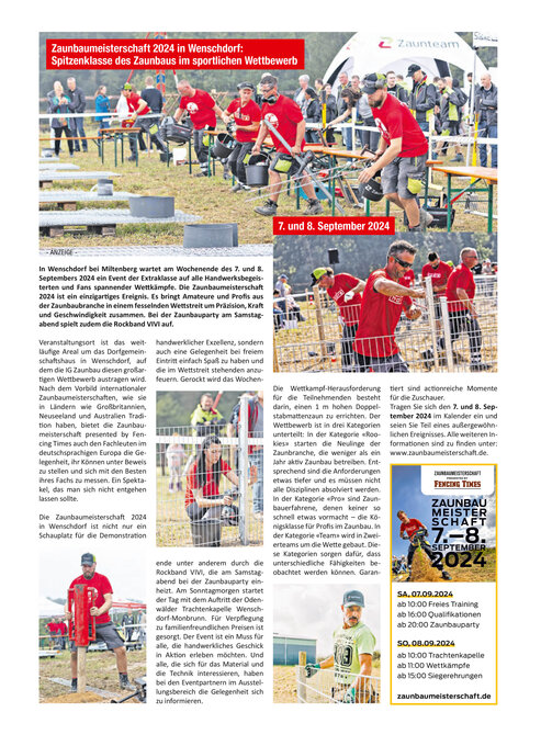 Unter meine-news.de mehr zur Zaunbaumeisterschaft 2024 in Wenschdorf nachlesen.